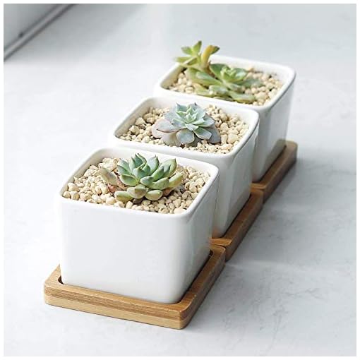 T4u 16 5cm Ceramic White Rectangle Succulent Plant Pot Cactus Plant Pot With Bamboo Tray Amazon Co Uk Garden